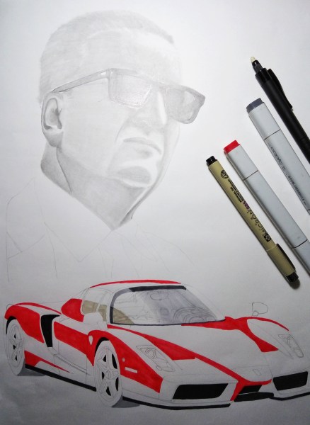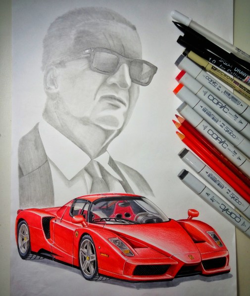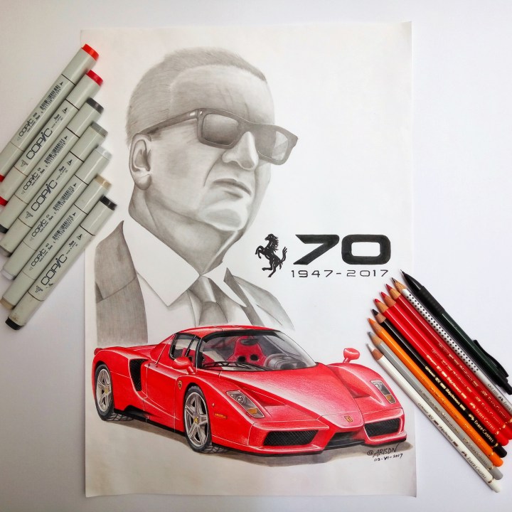 This artwork made to celebrate the 70th anniversary of Ferrari. Featuring the founder of Ferrari itself, mister Enzo Ferrari.