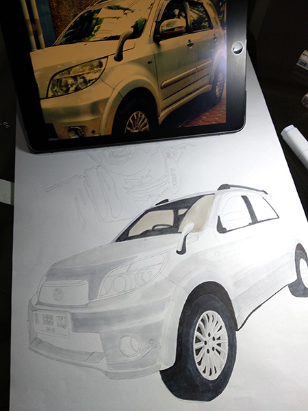 So, the concept of the gift is; Salesperson + Live in sub-urban Jakarta + Working in Jakarta + traffic jam around Jakarta + Car enthusiast = live with the car.