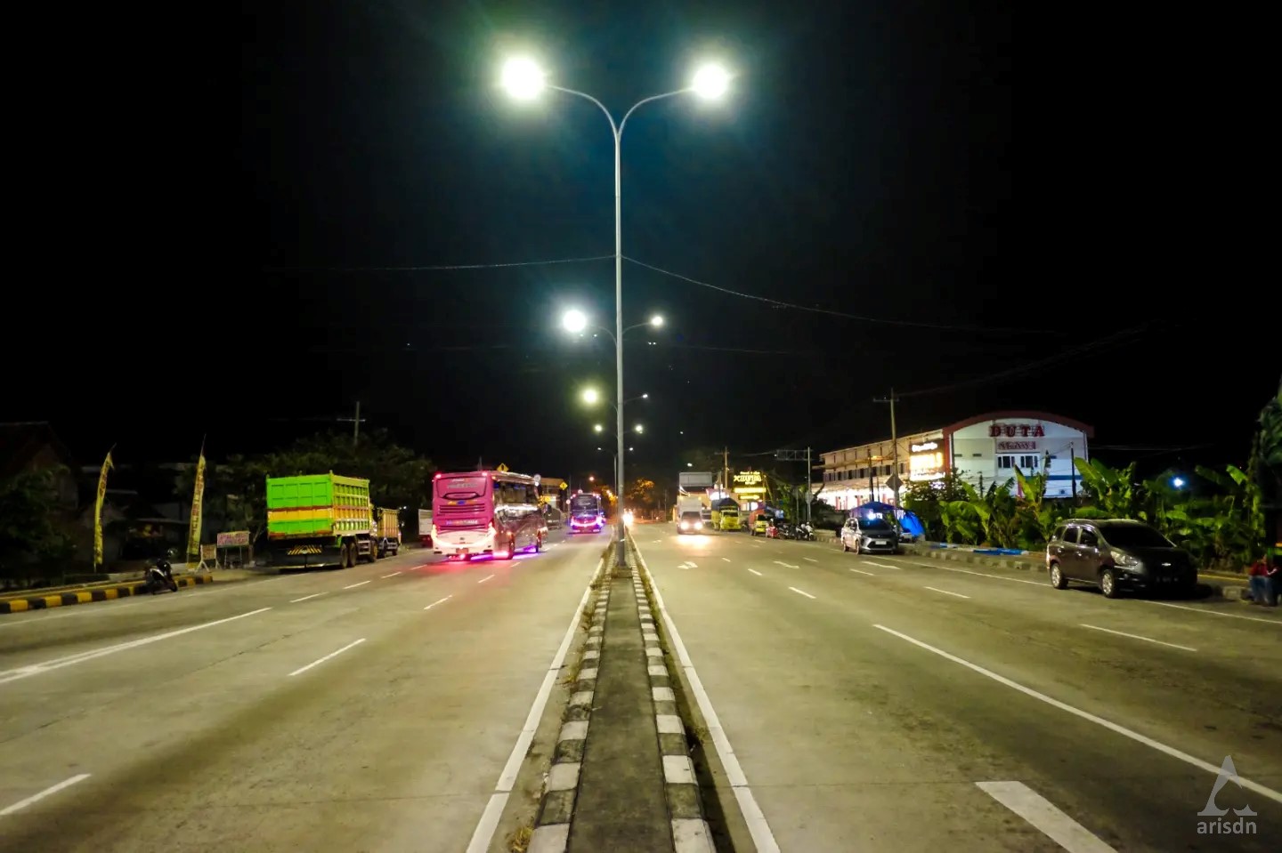 Tengah malam di Ngawi. Sebagai kota yang berada di jalur lalu lintas utama pulau Jawa, Ngawi menjadi hidup di malam hari, meski hanya di beberapa titik seperti terminal bus, stasiun kereta atau persimpangan jalan utama. Mungkin tak seramai jaman dulu sebelum toll dibuka, karena mayoritas kendaraan lebih memilih lewat toll untuk menyingkat waktu perjalanan.
