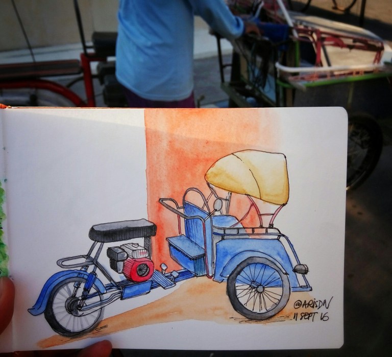 Becak adalah kendaraan beroda tiga dan mengandalkan tenaga kayuhan manusia untuk menggerakkannya. Namun saat ini, penggerak becak sudah beralih. Dari tenaga manusia menjadi mesin. Bahan bakar berubah dari sego pecel menjadi bensin. Jaman memang tidak bisa dilawan.