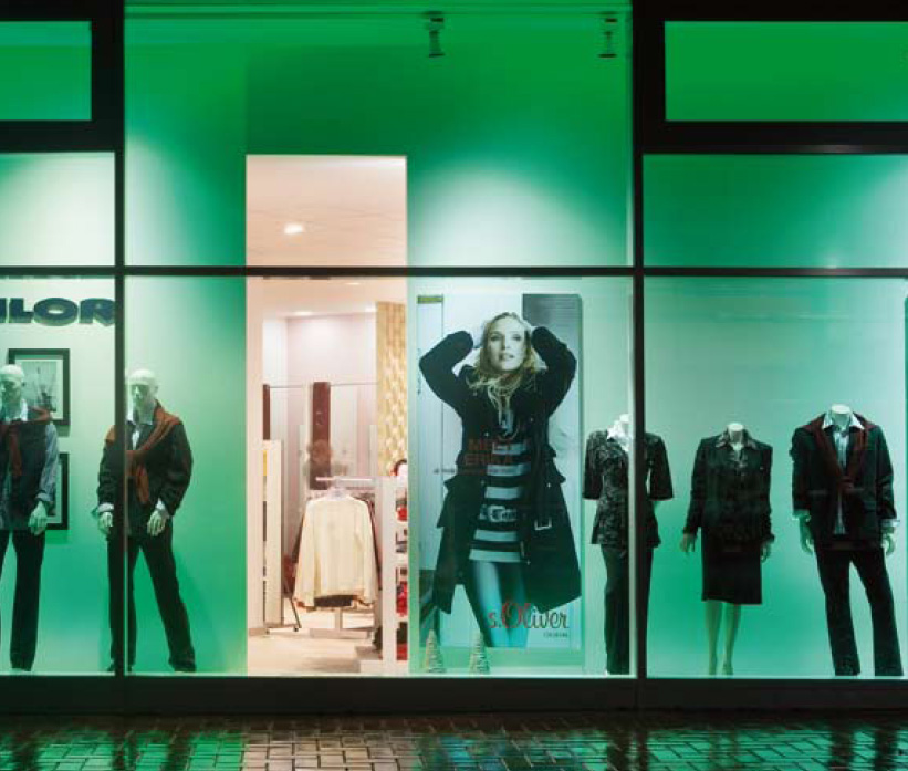In the evening too, when the shop is closed and outside lighting levels are low, new dramatic effects can be applied, again creating fresh and memorable impressions.