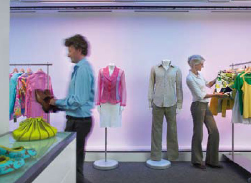 Flexible and adaptive, lighting enables retailers to create dynamic shop environments that convey powerful, engaging impressions. It can be used to optimize product presentations, and it can be adapted to support the latest‚collection, specific themes, the seasons, materials, colors, etc. It can also create a stage for temporary promotions.